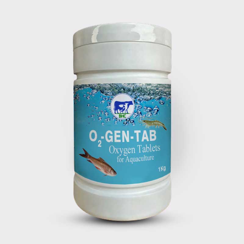 - O2-GEN releases oxygen vigorously into the ponds & increases D.O levels within short period of time, also maintains the D.O level for long duration up to 4 -5 days.