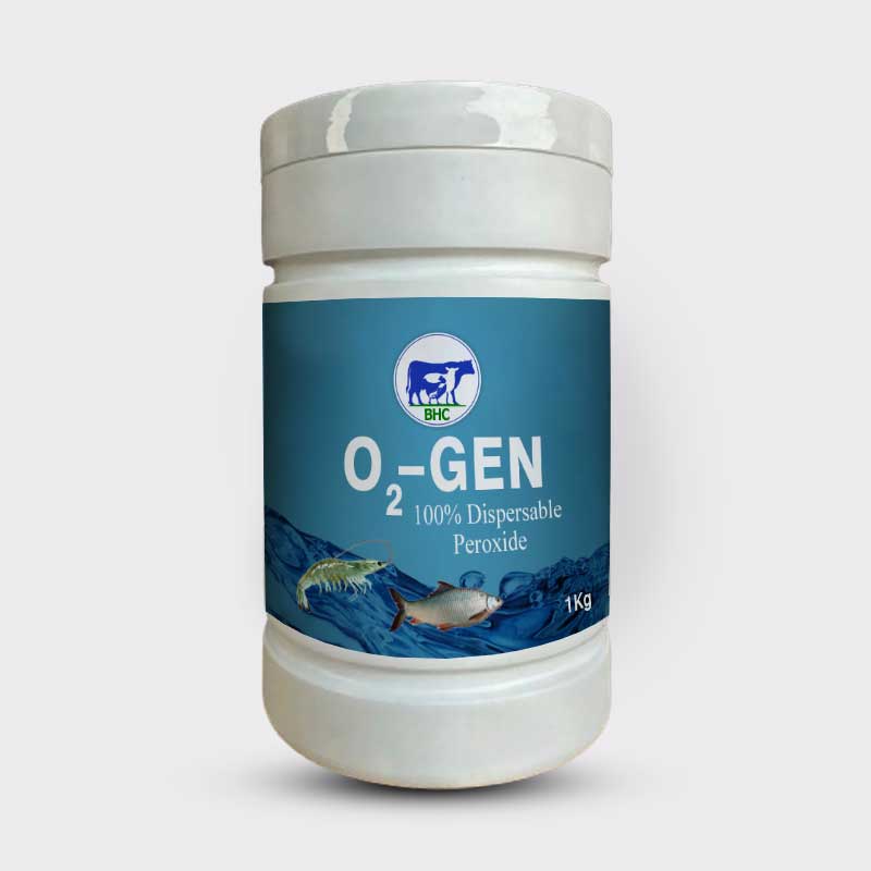- O2-GEN releases oxygen vigorously into the ponds & increases D.O levels within short period of time, also maintains the D.O level for long duration up to 3 -5 days.